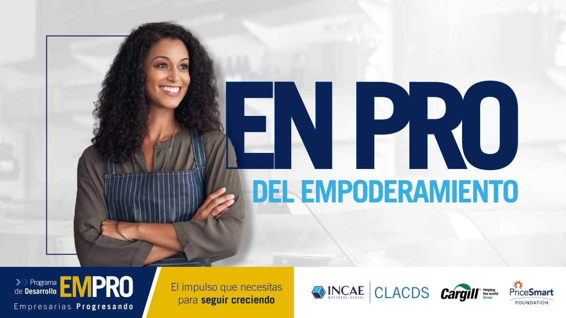 Este Programa fue desarrollado por INCAE Business School, bajo la iniciativa Women’s Business Growth y cuenta con el apoyo financiero y acompañamiento de Fundación PriceSmart y Cargill. EMPRO tiene como objetivo fortalecer los conocimientos empresariales de mujeres, a través de una serie de capacitaciones que contribuirán a la transformación y escalamiento de sus negocios, potenciando también el acceso a nuevos mercados y financiamiento.
