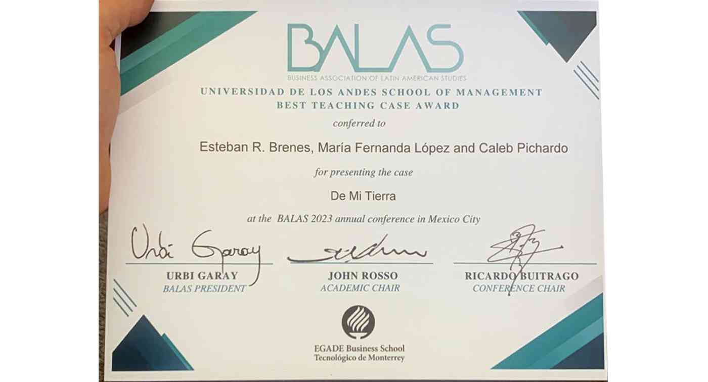 El caso “De Mi Tierra” fue seleccionado como el mejor caso de enseñanza gracias a su enfoque de sostenibilidad mediante la investigación práctica para mejorar la comprensión de estrategia en las empresas. Esto último aunado a las preocupaciones de sostenibilidad ambiental y social en el sector empresarial que se vuelven más relevantes en las realidades actuales.
