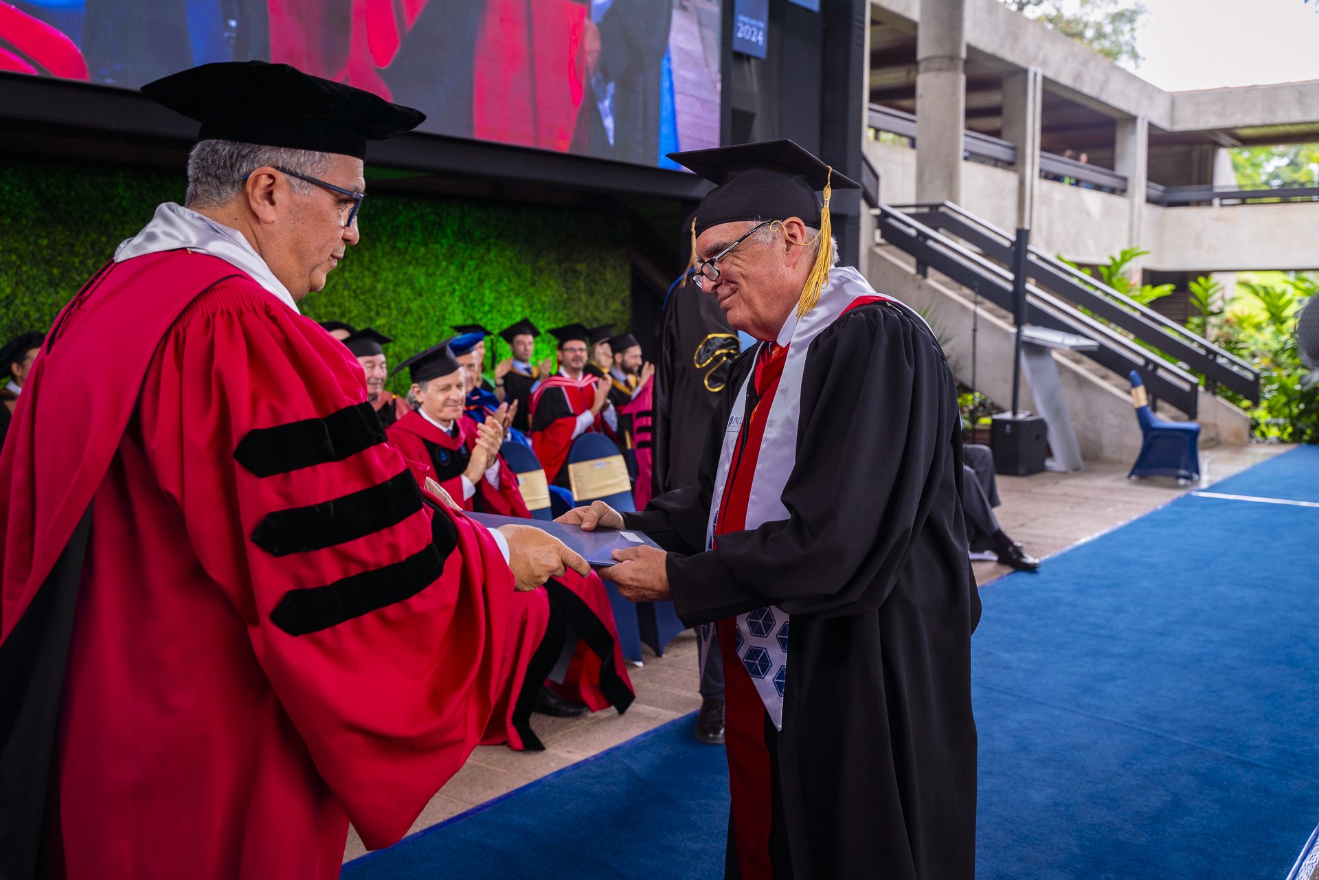 “Aprovecho para saludar y dar la bienvenida a la clase del MAE VI, donde se graduó nuestro actual rector Enrique Bolaños, que ha dejado a través de estos 50 años una maravillosa huella de impacto sobre toda la región, y a la clase del MAE XVI con quienes me tocó compartir la apertura de este campus en el primer semestre de 1984”, fueron las palabras de Roberto Artavia Loría, presidente del consejo directivo de INCAE, al iniciar la ceremonia de graduación.