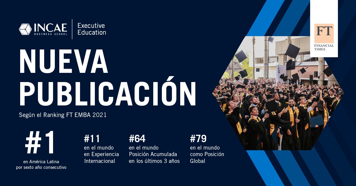 El Financial Times acaba de publicar el ranking global anual de los 100 mejores programas Executive MBA del mundo y, por sexto año consecutivo, el Executive MBA (EMBA) de INCAE ha quedado seleccionado en esta exclusiva lista. Nuestro EMBA es el único programa impartido 100% por una escuela de América Latina que ha sido reconocido entre los mejores del mundo.