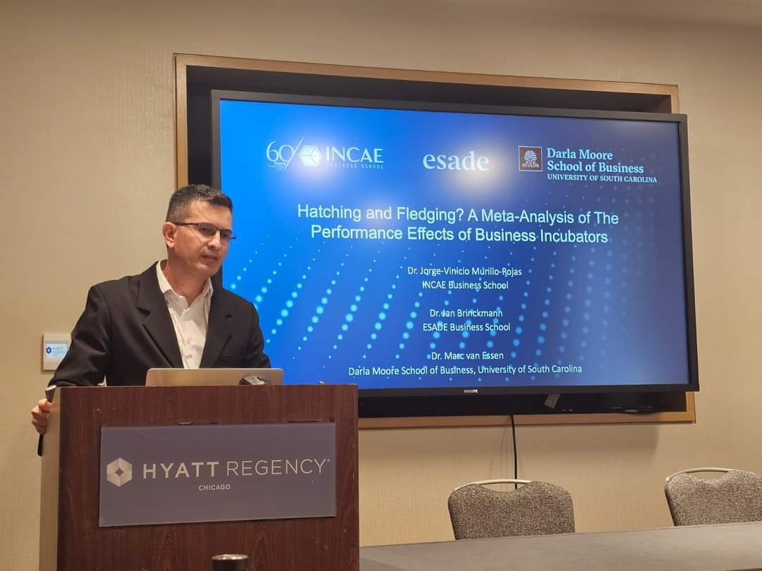 Por su parte, Jorge Vinicio Murillo presentó el artículo “Hatching and Fledging? A Meta-Analysis of the Performance Effects of Business Incubators” en una sesión de la división de Entrepreneurship, ofreciendo un análisis sobre el impacto de las incubadoras de empresas en el rendimiento de los emprendimientos.