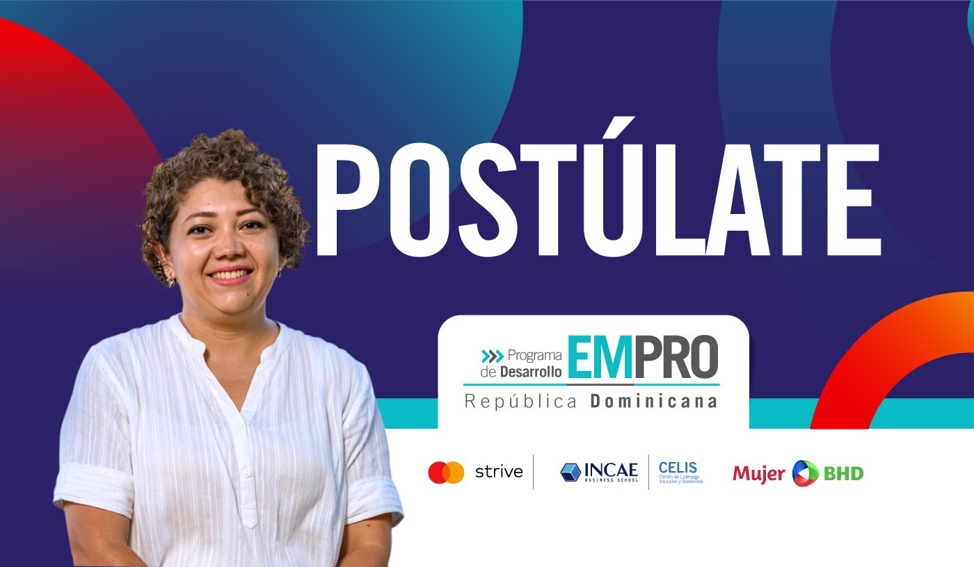 Sé una de las empresarias líderes en el ecosistema empresarial de República Dominicana. Llega a nuevos mercados, innova y crear las relaciones comerciales que tú empresa necesita. Revisa los requisitos y postúlate por una beca del 100% llenando el formulario del link