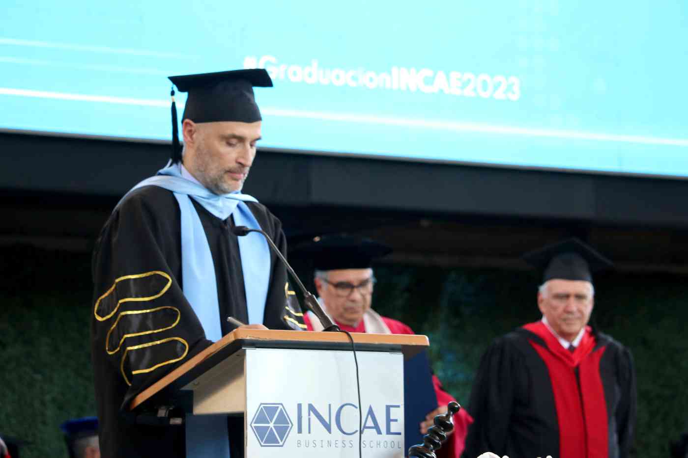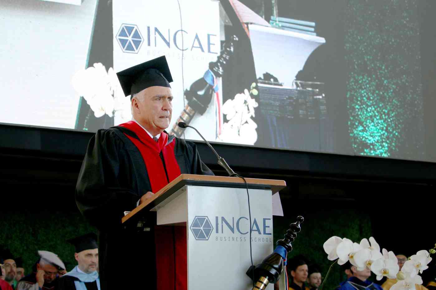 El evento también contó con las inspiradoras palabras del invitado de honor, Dr. Roberto Artavia Loría, Presidente del Consejo Directivo y ex Rector de INCAE, quien les instó: “Con el privilegio de la educación se adquiere simultáneamente una gran responsabilidad que espero que hoy reconozcan y celebren intensamente, pues la sociedad cuenta con todos y cada uno de ustedes para ser líderes en los cambios necesarios hacia el futuro. Ejerzan esa responsabilidad con un enorme sentido de integridad y ética personal y profesional, con un sentido profundo de solidaridad ante las desigualdades e injusticias que aún prevalecen, con un compromiso imperecedero con la sostenibilidad y la democracia, y con la convicción de que cada uno de ustedes está preparado para hacer la diferencia en aquellas áreas e industrias que decidan trabajar.”