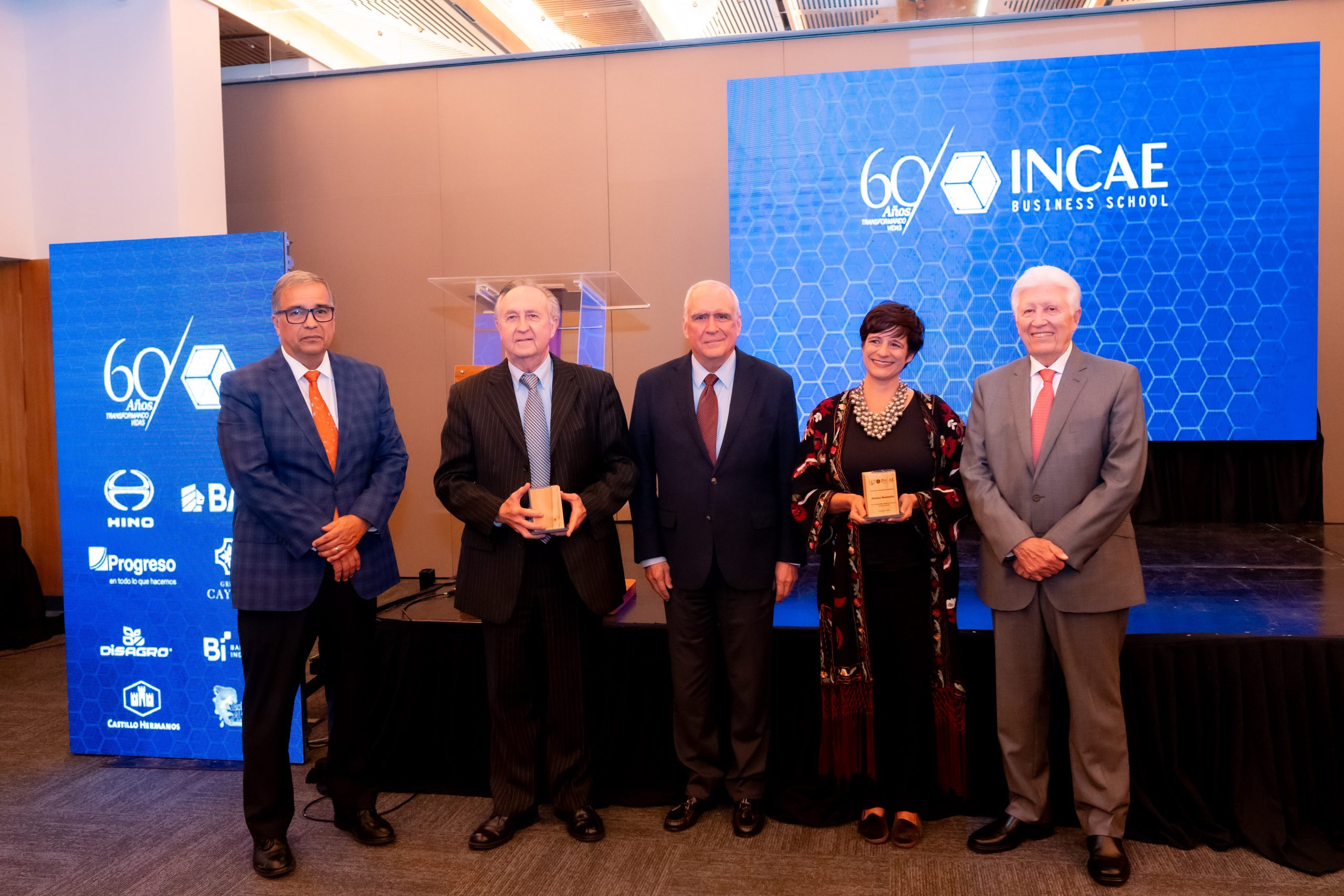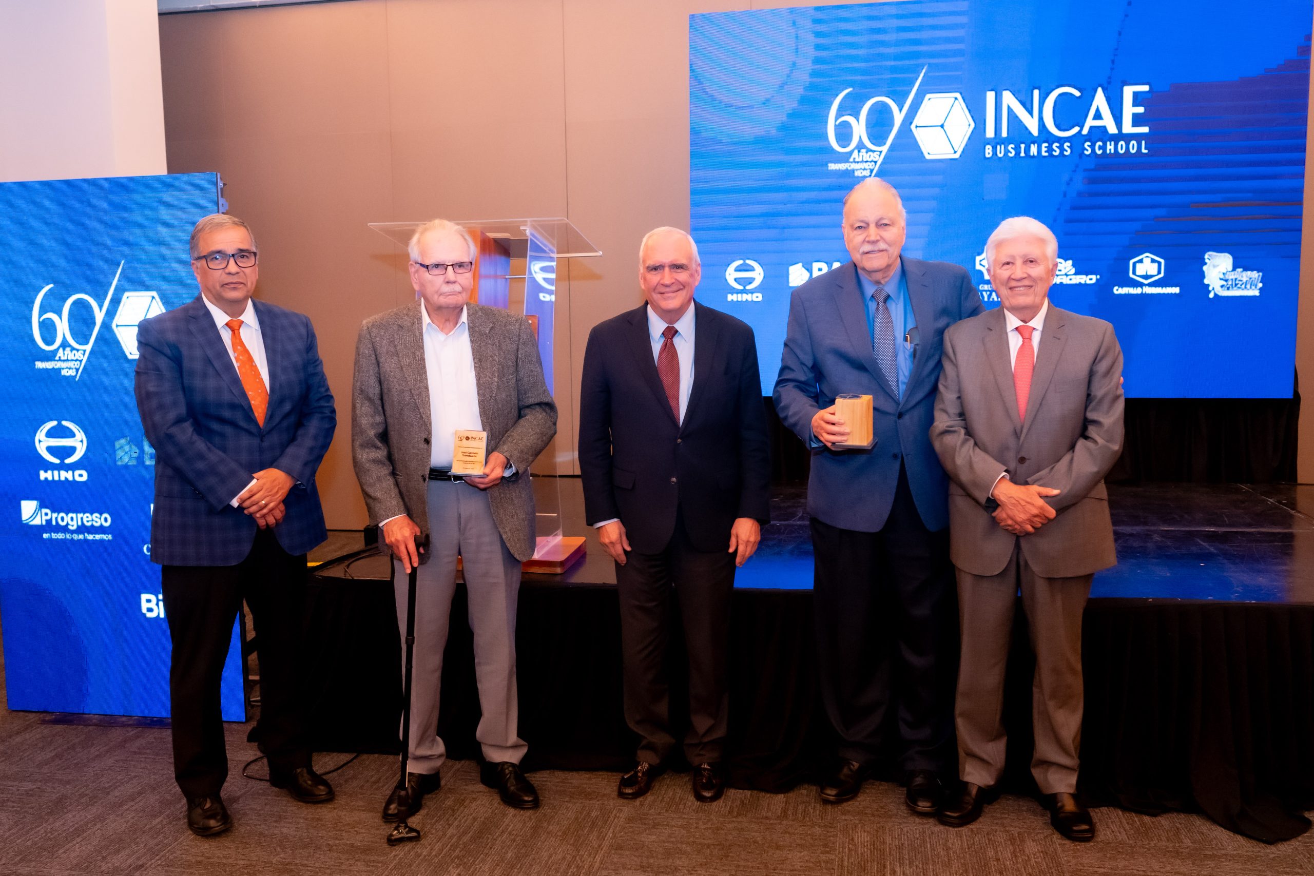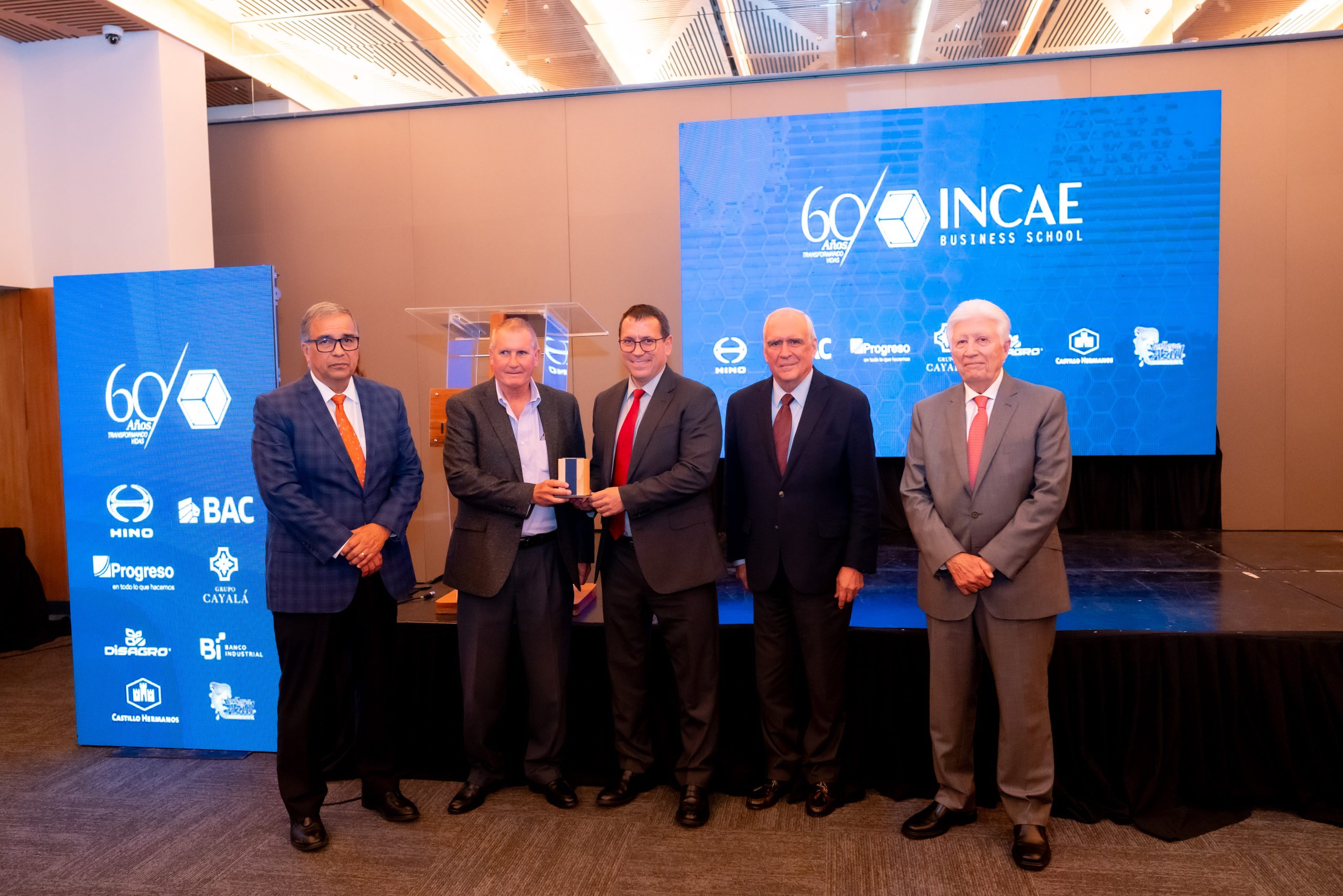 Adicionalmente, Luis Lara y Ramiro Castillo, del Banco Industrial, fueron distinguidos por su compromiso con la misión de INCAE en este 60° aniversario. Eric Campos, graduado de INCAE y Gerente General del BAC en Guatemala, también fue reconocido por su activa participación en la Comunidad Incaísta tanto en Guatemala como en Costa Rica, donde fundó la Asociación de Graduados. Asimismo, se hizo un reconocimiento especial a Danilo Siekavizza por su apoyo invaluable y su contribución esencial a la visión de INCAE en Guatemala.
