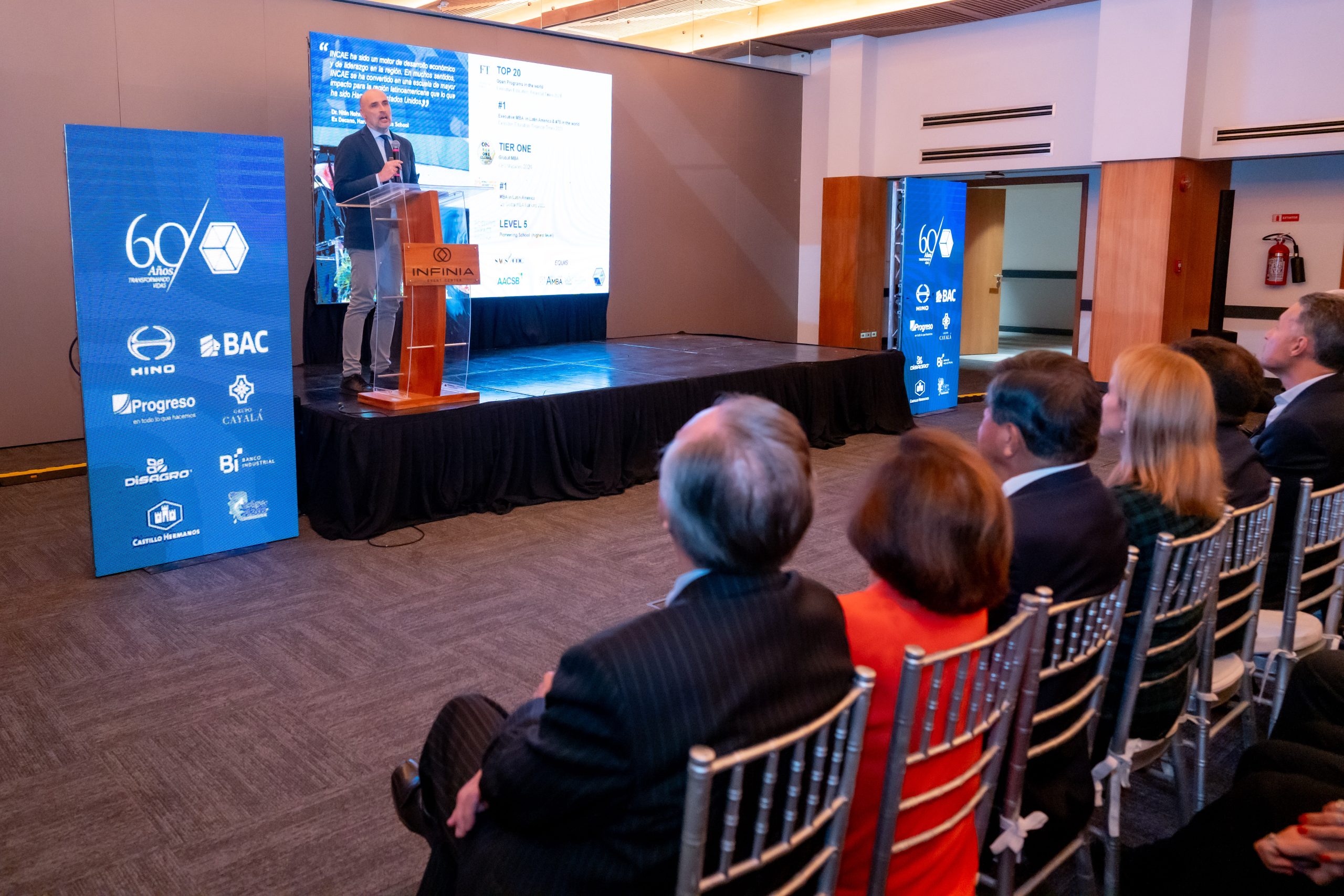 Las palabras de apertura fueron pronunciadas por Danilo Siekavizza, presidente del Comité Nacional de INCAE en Guatemala, quien destacó: “Durante estos sesenta años, INCAE ha construido su reputación y reconocido éxito, fiel a su misión de no solo formar, sino transformar a empresarios y ejecutivos en líderes que contribuyen al desarrollo de sus empresas, y que además trabajan con sensibilidad y capacidad para cumplir con el fin último de nuestra misión: contribuir al desarrollo integral de nuestros países.”