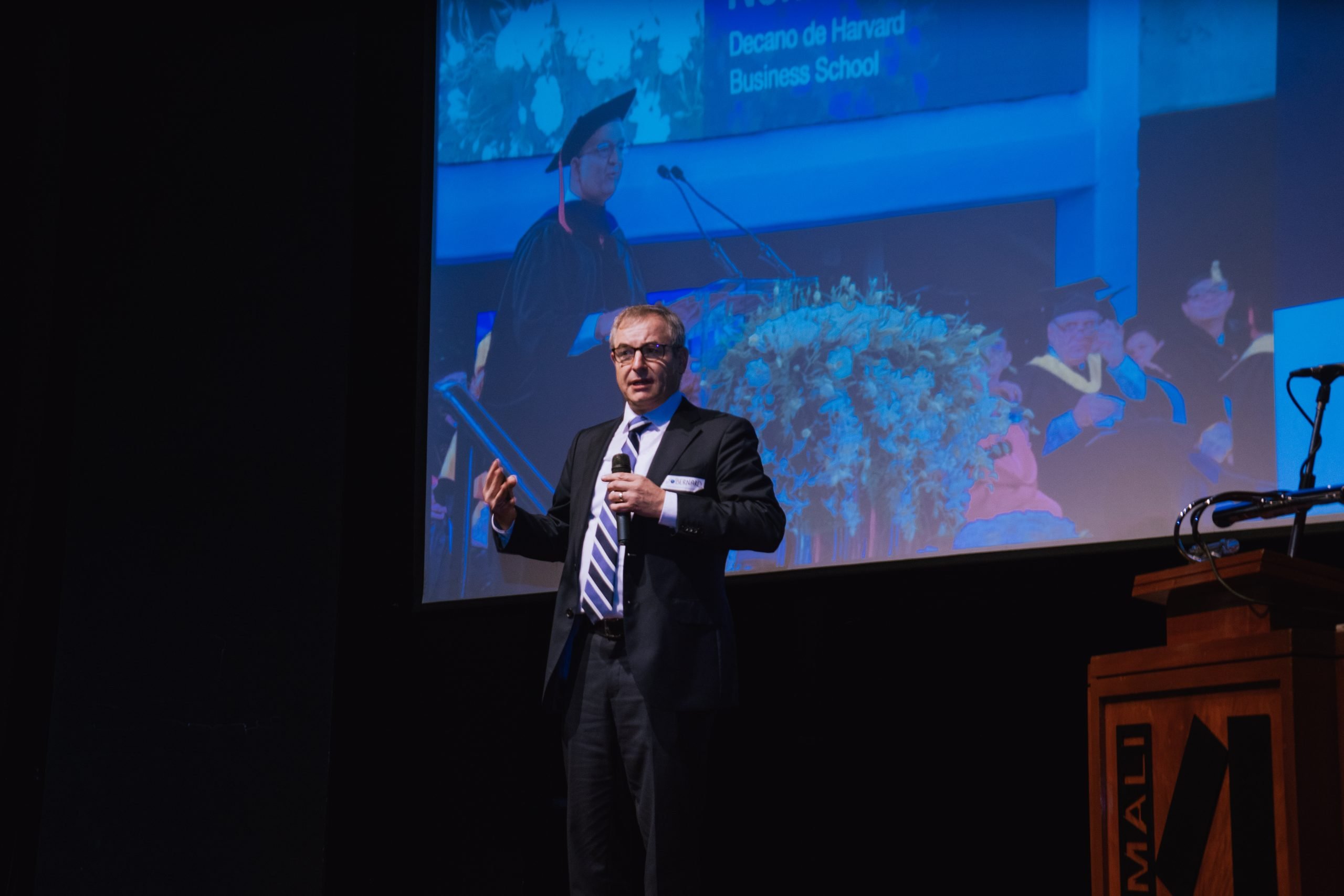A continuación, los Decanos Bernard Kilian y Michele Quintano tomaron la palabra para compartir hacia dónde se dirige la institución, detallando la visión de la Facultad y los Centros de Impacto, así como los nuevos programas de grado y ejecutivos que están transformando la oferta académica de INCAE para adaptarse a los retos del siglo XXI.