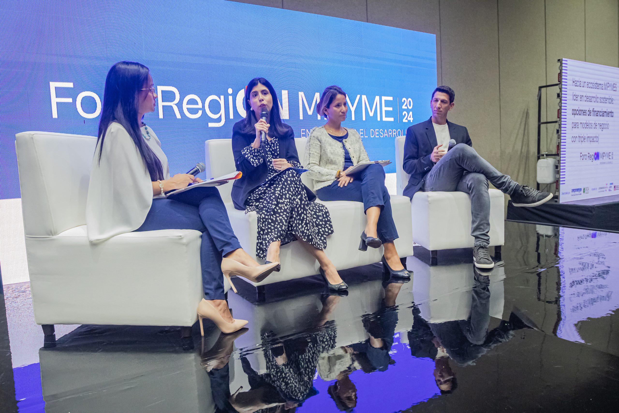 Wendy Rodríguez, Directora de Advancement LATAM de INCAE Business School, formó parte integral del evento al participar en la Mesa Redonda “Financiamiento e inversión de triple impacto”. Este panel, moderado por Mercy Ramos del BCIE, también contó con la presencia de Camila Mena de BID Invest y Nicolás Ibáñez de EasyMD App. Juntos, discutieron sobre la creación de un ecosistema MIPYME líder en desarrollo sostenible, enfocándose en opciones de financiamiento para modelos de negocio con triple impacto.